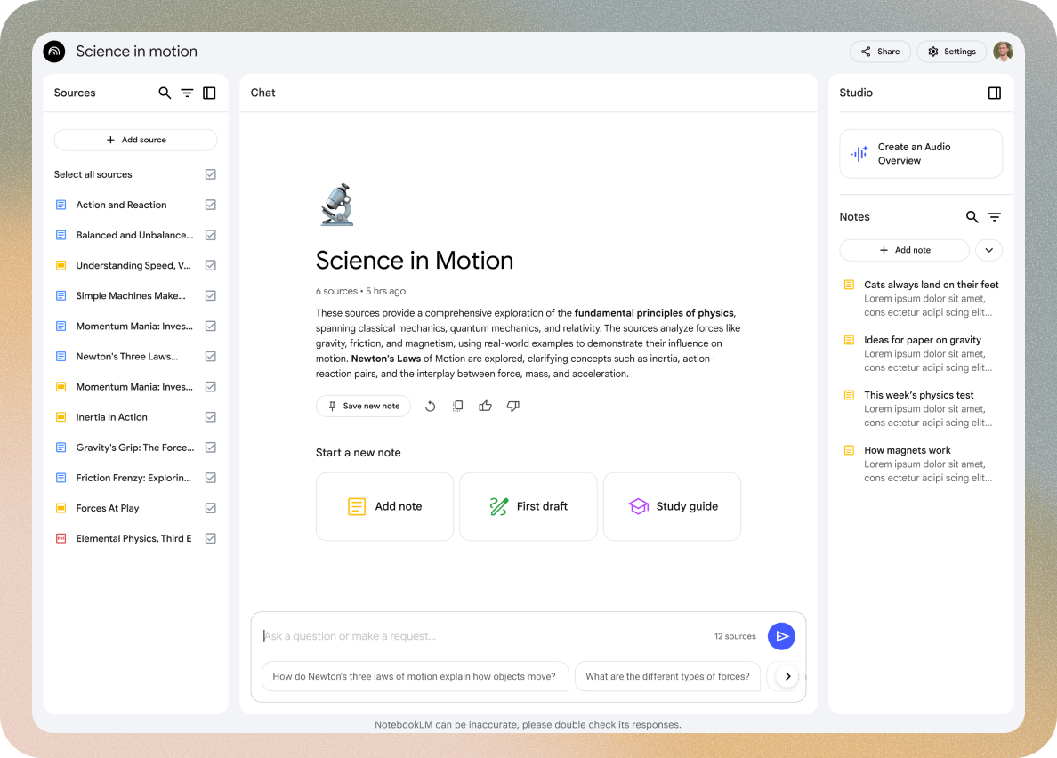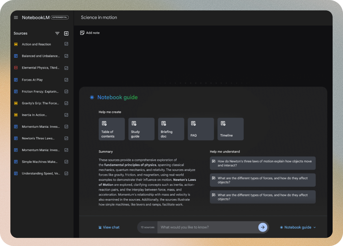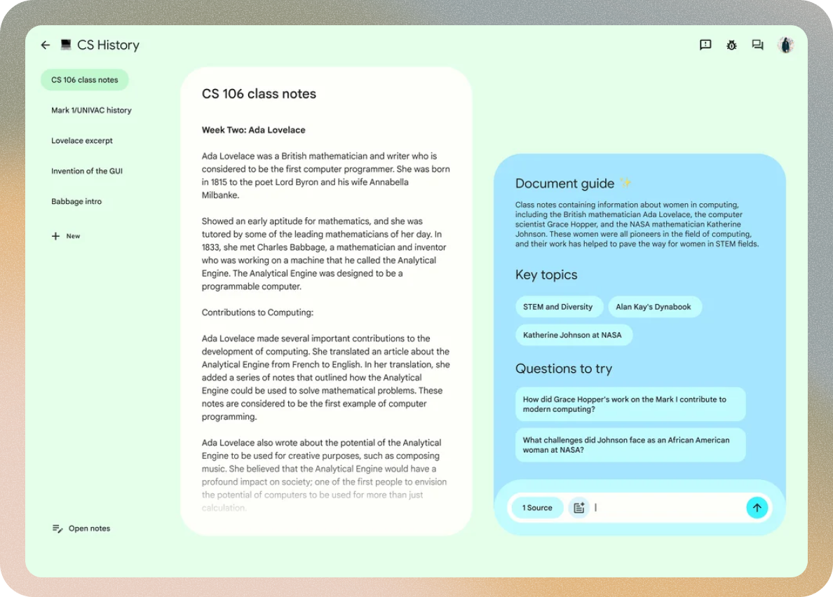 One of the core problems we set out to solve with NotebookLM was “tab overwhelm” the scattered, fractured experience of jumping between tools while trying to synthesize ideas. We wanted to create a space where every part of the creation journey could happen in one place.